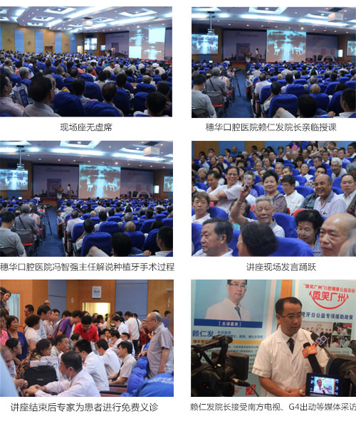 2016年9月24日,由广州日报和穗华口腔医院联合主办的名医大讲堂将在穗隆重举行。届时,将由穗华口腔医院资深种植专家为缺牙市民分享无牙颌种植新技术,全方位地讲述全口无牙颌种植修复从植体植入到修复完成到术后维护的整个过程,帮助牙缺失市民重新“长出”牙齿。活动现场市民们能够与“主席”共同见证种植牙新技术,更加了解无牙颌种植。同时,当天参加活动的患者可享受穗华口腔医院提供的爱牙基金专项补助大礼,