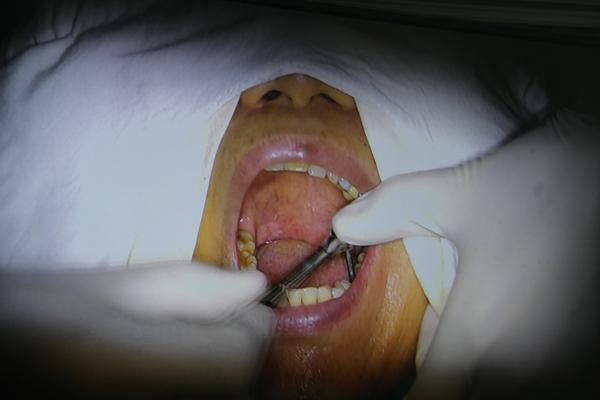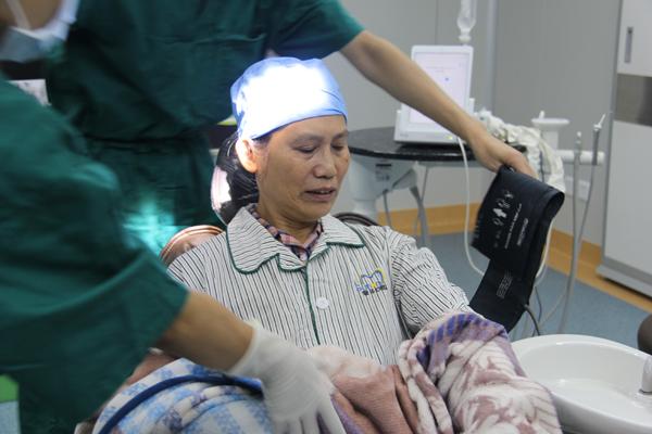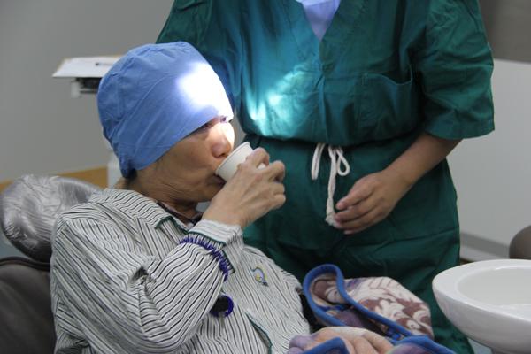 手术开始前,郑阿姨漱口,保持口腔清洁。